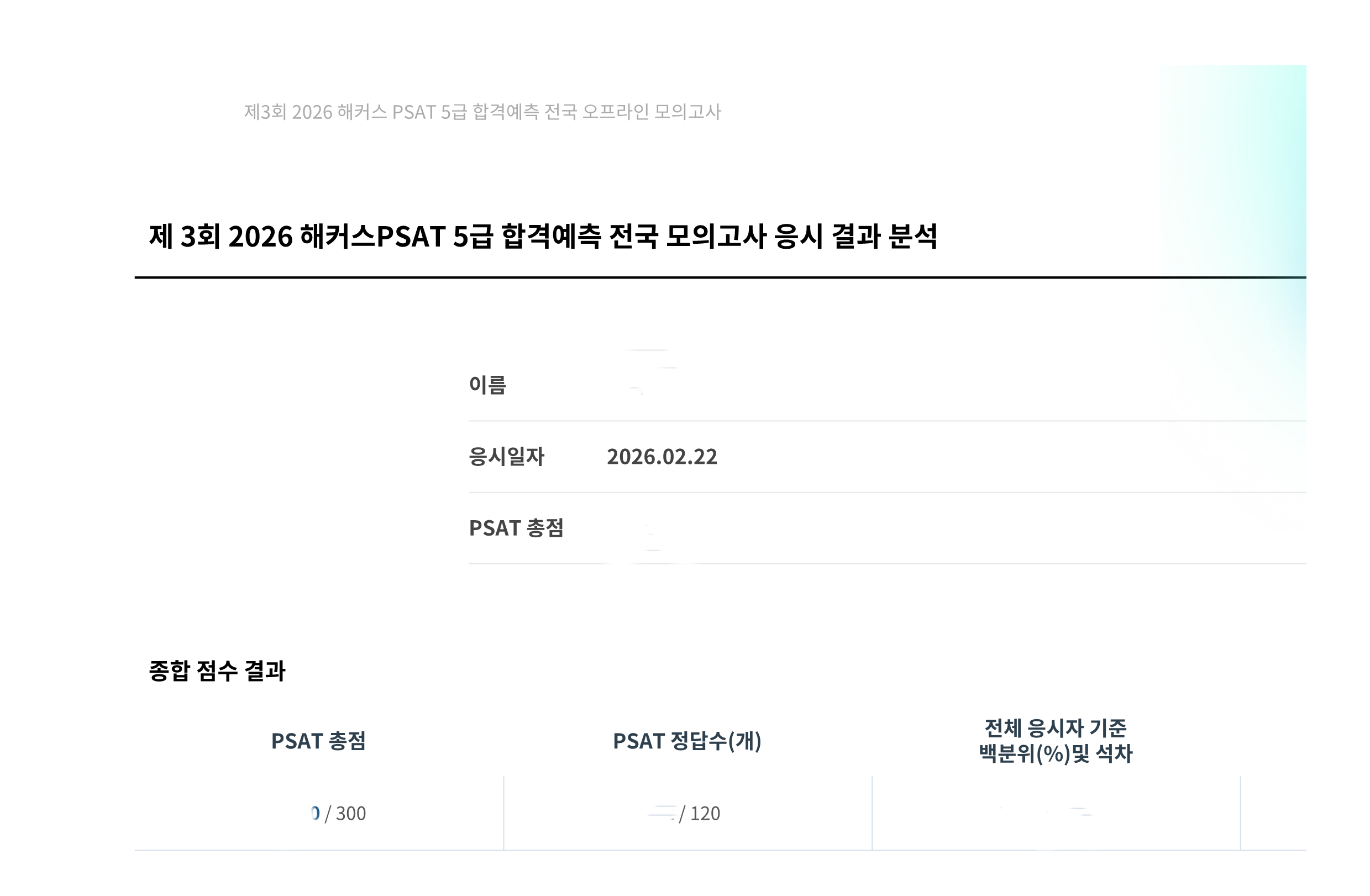 - 해커스PSAT 5급 전국모의고사 후기